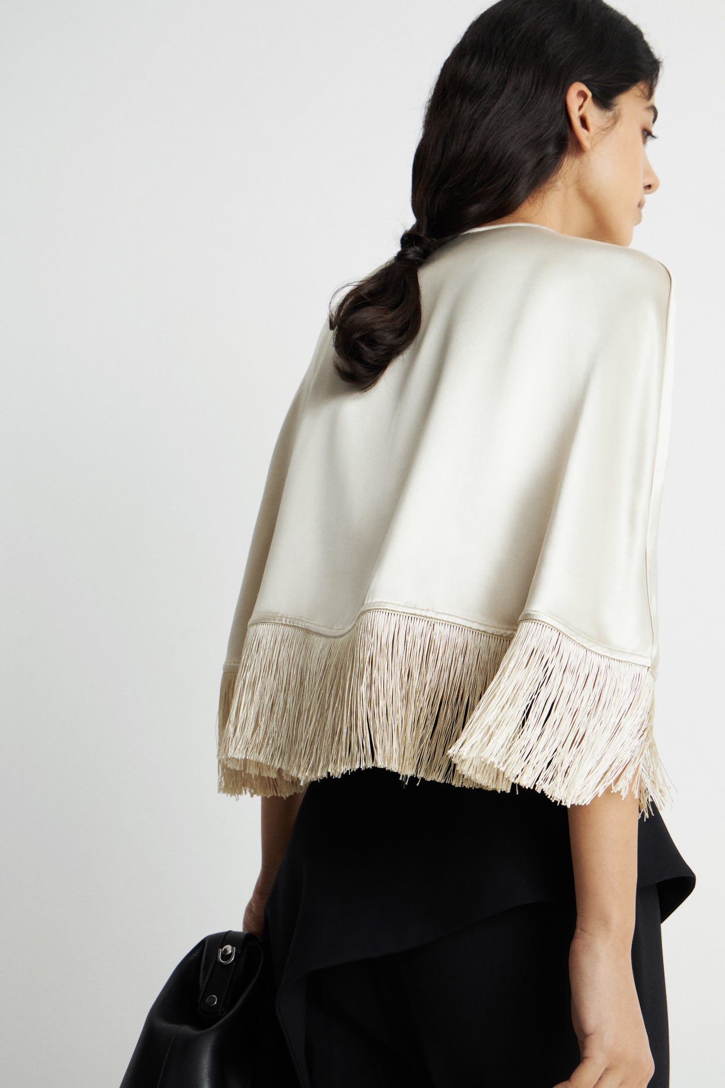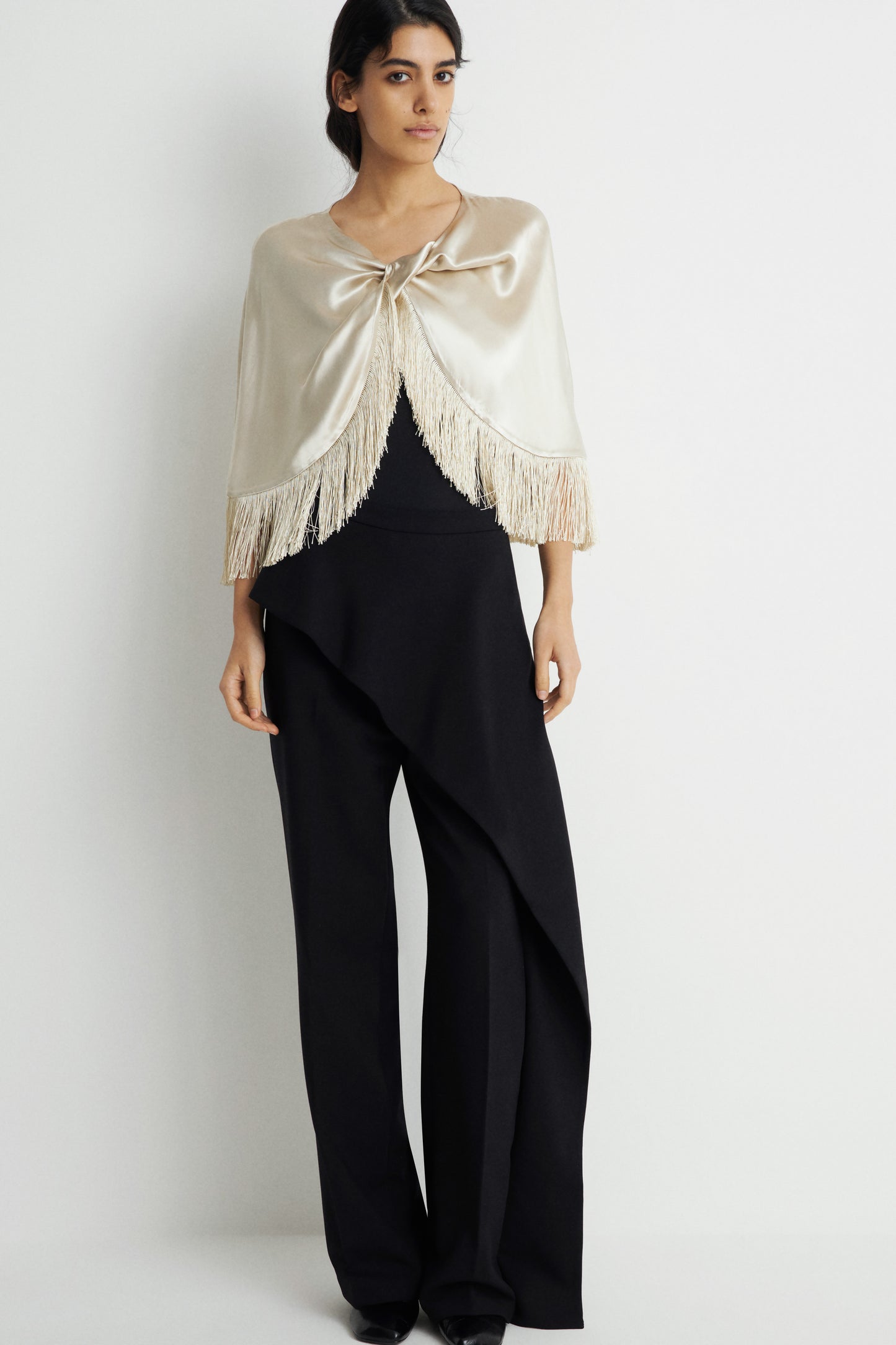 FRINGE-TRIMMED SATIN CAPE